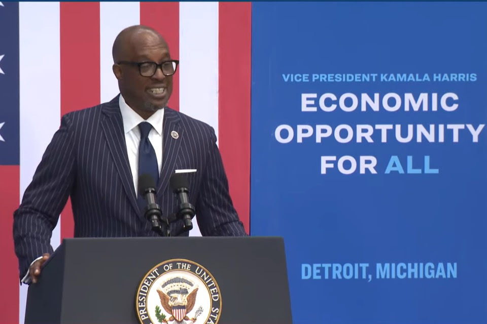 Detroit, MI – May 9, 2024 – In a compelling address introducing Vice President Kamala Harris at her “Economic Opportunity” tour stop in Detroit, Michigan, U.S. Black Chambers, Inc. (USBC) President & CEO, Ron Busby Sr., provided a persuasive overview of the USBC’s pivotal role in promoting the Black economic agenda. His remarks emphasized the organization’s dedication to closing the Black Wealth Gap and addressed the challenges facing Diversity, Equity, and Inclusion (DEI) initiatives in the nation.